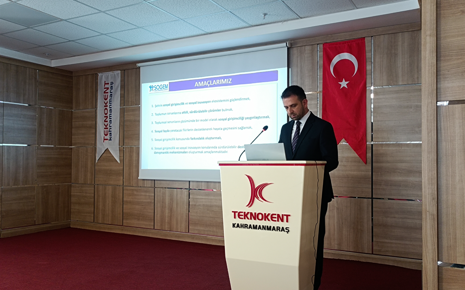 Kahramanmaraş Teknokent ev sahipliğinde, Kahramanmaraş Büyükşehir Belediyesi Sosyal Girişimcilik Merkezi (SOGEM) tarafından sosyal girişimcilik ekosisteminin güçlendirilmesine yönelik bilgilendirme toplantısı gerçekleştirildi.