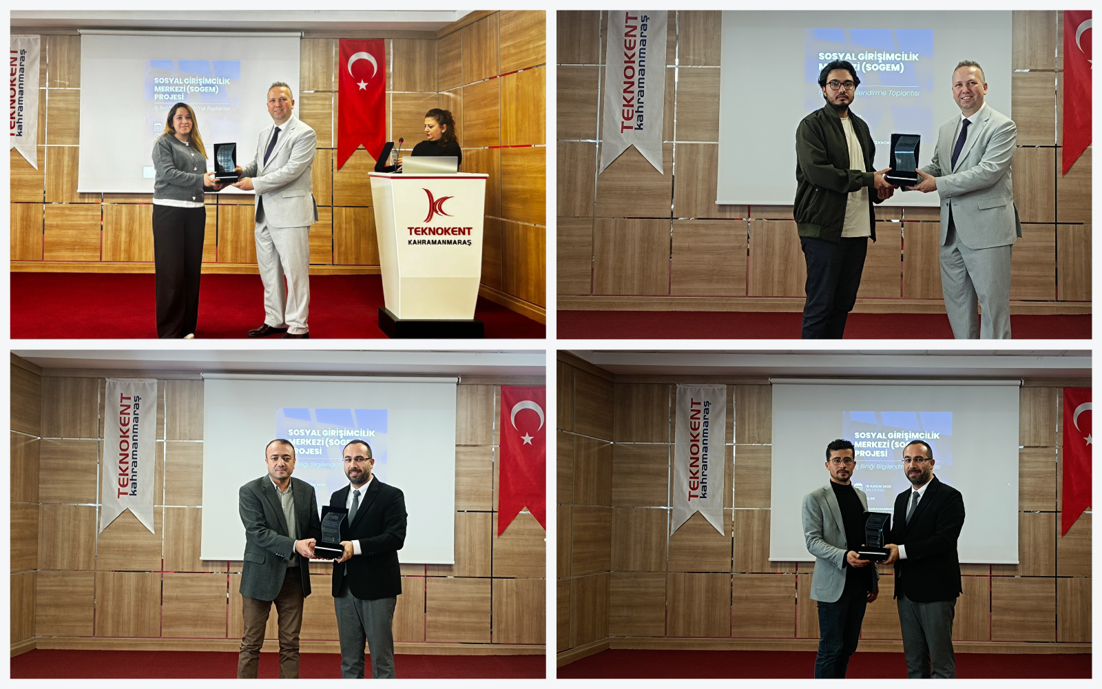 Toplantı sonunda 4-5 Ekim 2025 tarihlerinde SOGEM tarafından gerçekleştirilen NASA Space App Challenge etkinliğine sponsorluk desteği veren; T-Soft, ARGEM Bilgi Teknolojileri, Bate Bilişim ve Mim Bilgisayar firmalarına Kahramanmaraş Büyükşehir Belediyesi Dış İlişkiler Daire Başkanı Erdoğan Emrah HATUNOĞLU ve Kahramanmaraş Teknokent Genel Müdürü Dr. Oğuz CİĞERLİOĞLU tarafından teşekkür plaketleri takdim edildi. Aynı etkinliğe jüri desteği sunan; Bremium Medya, Hexaops Teknoloji, Aeroworks Ar-Ge Mühendislik, Pixon Yazılım Bilişim, Tripod Medya Yazılım ve Avicenna Teknoloji firmalarına, Kahramanmaraş Teknokent İdari Mali İşler Uzmanı Mine KARABÖRK’ün de katkılarıyla teşekkür belgeleri verildi.