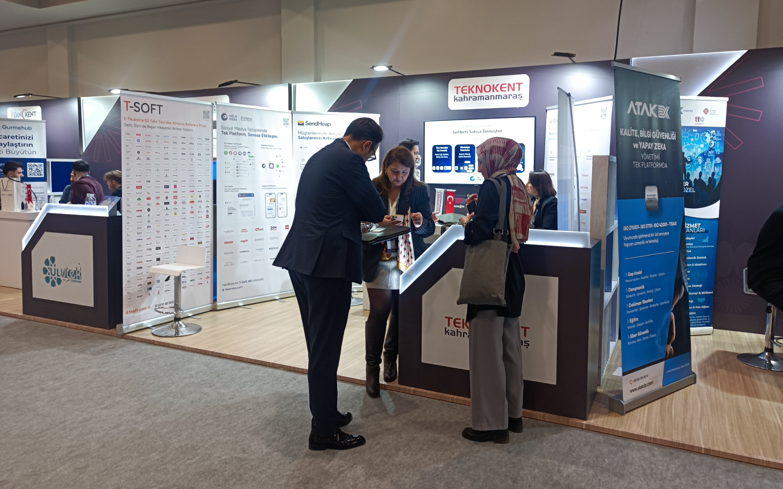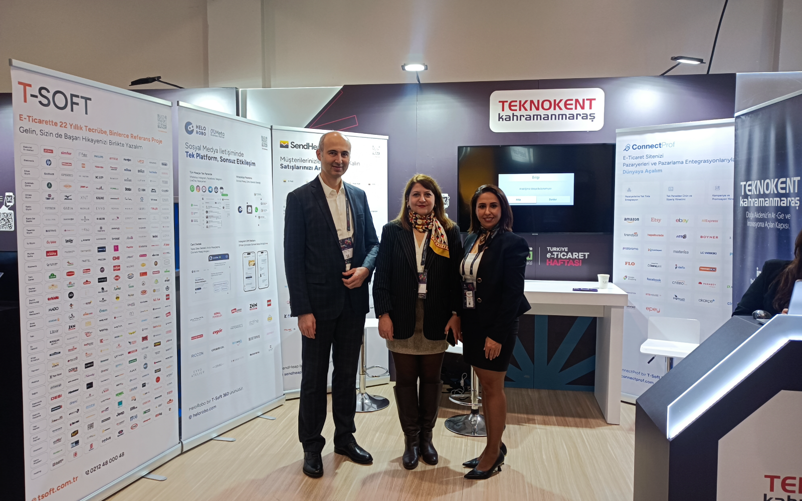 Kahramanmaraş Teknokent, Türkiye E-Ticaret Haftası’na katılarak sektöre sunduğu hizmetler, yürüttüğü projeler, e-ticaret altyapısı ve geliştirdiği çözümler hakkında ekosistemin farklı paydaşlarıyla görüşmeler gerçekleştirdi ve bilgilendirmelerde bulundu. Etkinlikte Kahramanmaraş Teknokent standına, Teknoloji Geliştirme Bölgesi firmalarından T-Soft eşlik etti.